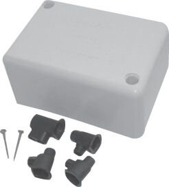Small & large junction box contains 3 single screw cable connectors, 1 double screw earth connector and 2 fixing nails.